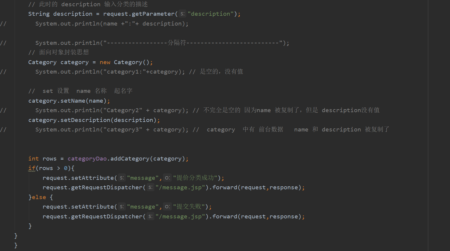 分类的实体类