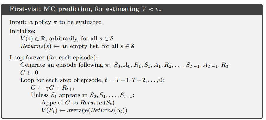 蒙特卡洛方法同样利用GPI思想。它通过策略估计的替代(利用样本经验)来估计每个状态的值,没有使用环境的概率分布。因为没有环境的模型,蒙特卡洛方法比较倾向于对动作值的估计来形成最优策略。