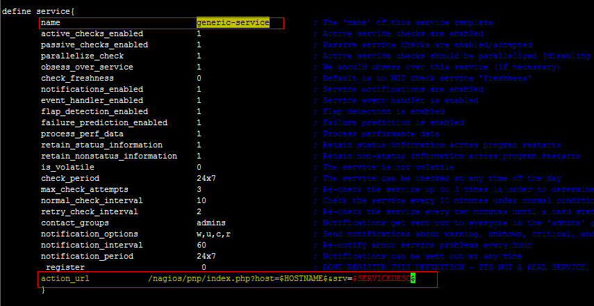 4、服务出图,模板或服务配置里service.cfg、templates.cfg注意,service中的use generic-service 要和 templates中的name generic-service名称要一致