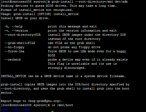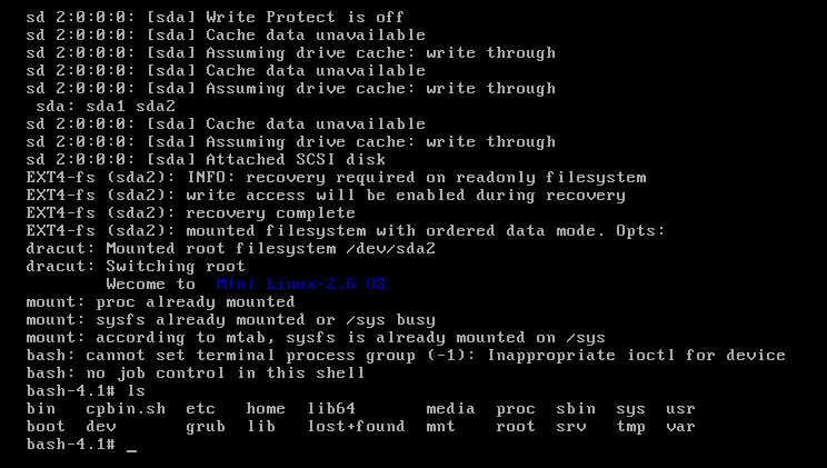 #启动后再以读写方式重新挂载/dev/sda2上,这样的话就要把宿主机关机再后再新运行这个小系统了