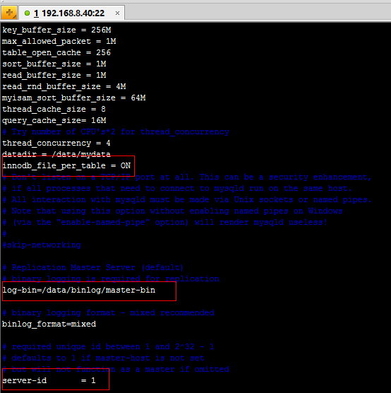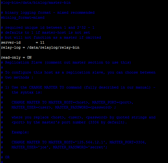mysql> CHANGE MASTER TO MASTER_HOST='192.168.8.40',MASTER_USER='repluser',MASTER_PASSWORD='replpass2014';