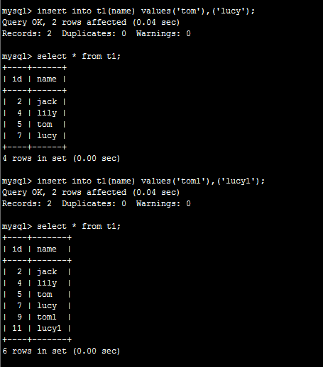 auto_increment_increment表示自增长字段每次递增的量,其默认值是1,取值范围是1 .. 65535