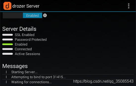 drozer Agent默认监听的端口是31415(这里设置完成不会有回显)