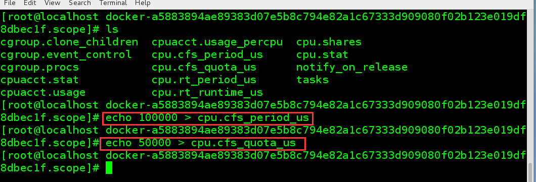 4.进入该容器所在cgroup中控制CPU资源的目录: