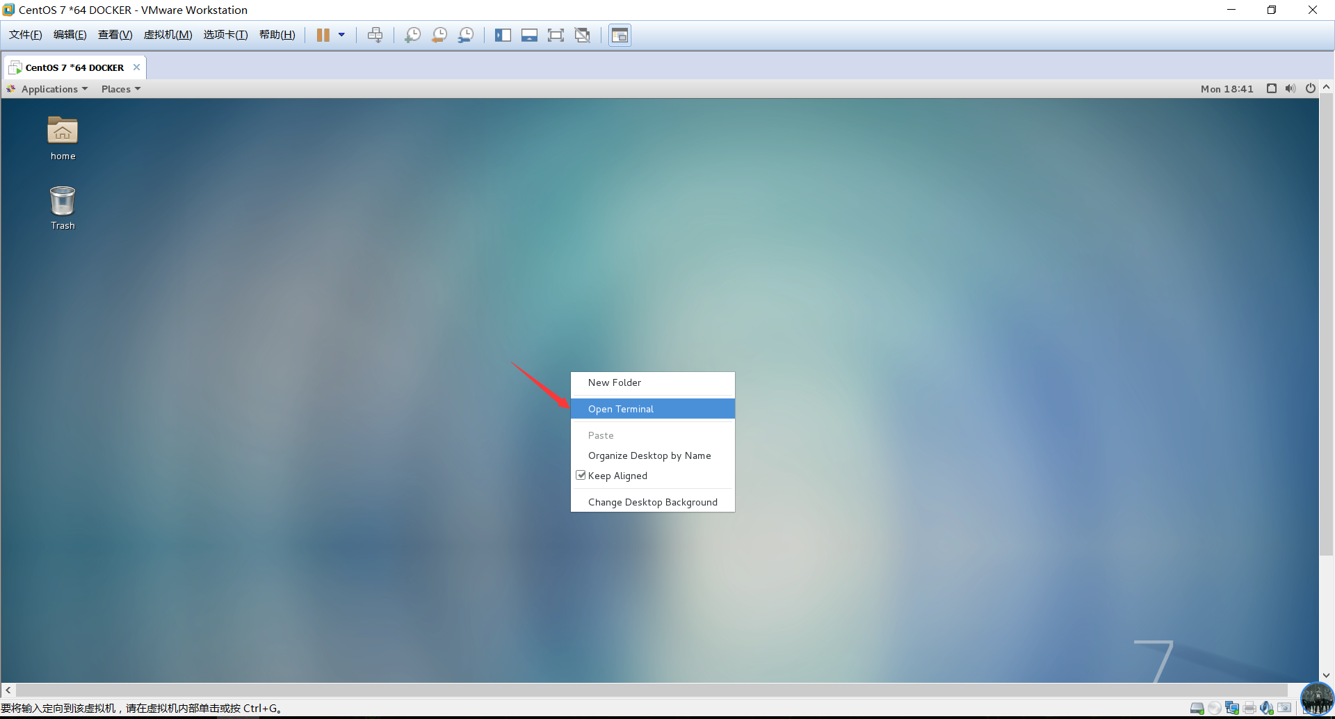 4.在桌面右键 open terminal: