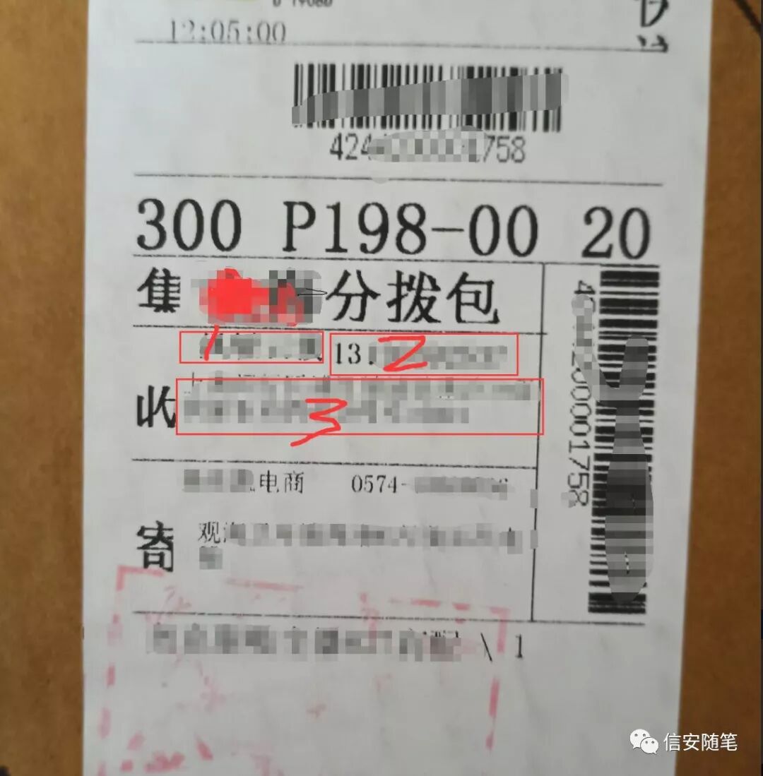快递盒子上1,2,3分别泄露了小明的"姓名"、”电话“、”家庭住址“ ,要知道,并非所有的快递都会对用户的信息进行打码,而你买东西的时候更不知道店家发的什么快递。
