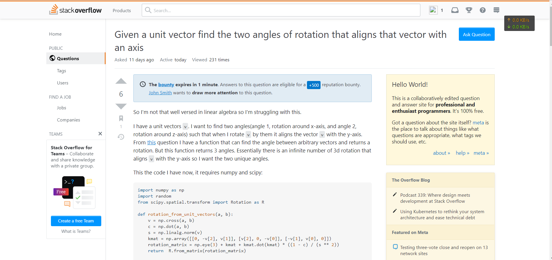 首页依然是分为左中右三栏,左侧是求职信息、分类标签等相关的导航栏;右侧则展示了精选博客、文章自定过滤器等;中间则是重点问答模块,不同于CSDN(虽然可以看出来CSDN应该是在此基础上进行了参考借鉴),这里采用的筛选条件为:Interesting,Bountied,Hot,Week。