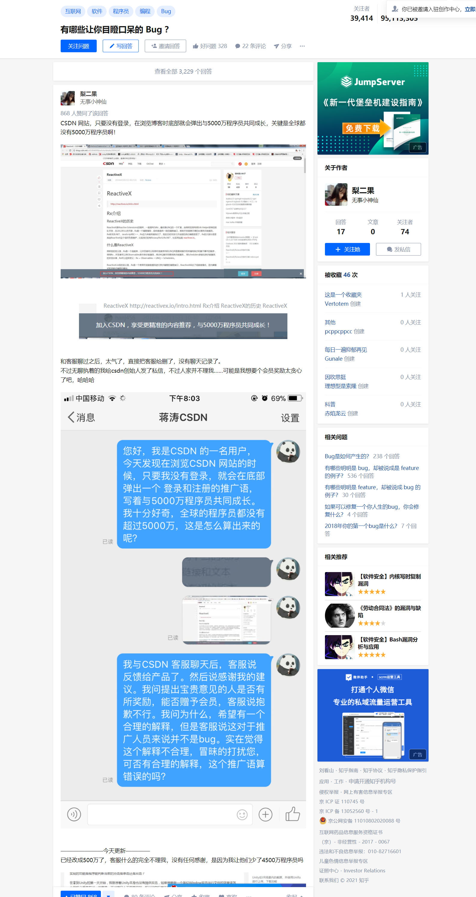 这几天因作业要求对CSDN在‘知乎、百度、贴吧、博客园上都进行了近乎全方位的搜索,"好"评如潮。。
