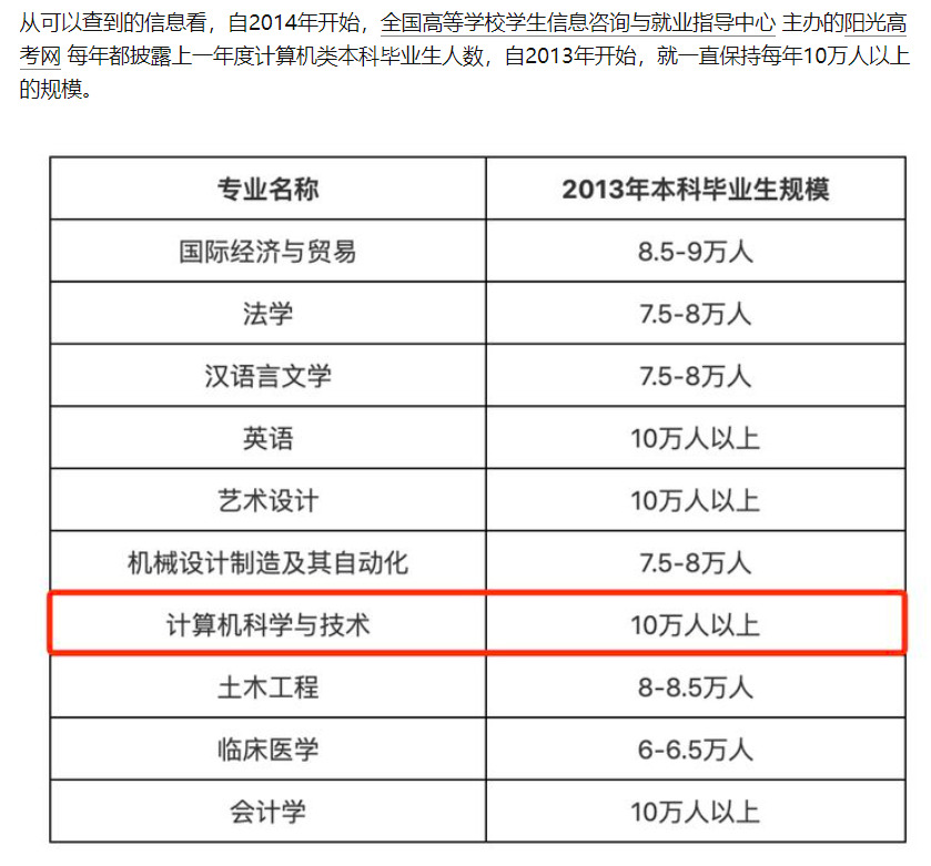 - 上网搜到2013年起计算机相关专业毕业生10w+,保守估计在校生先作*4运算,40w-60w+;