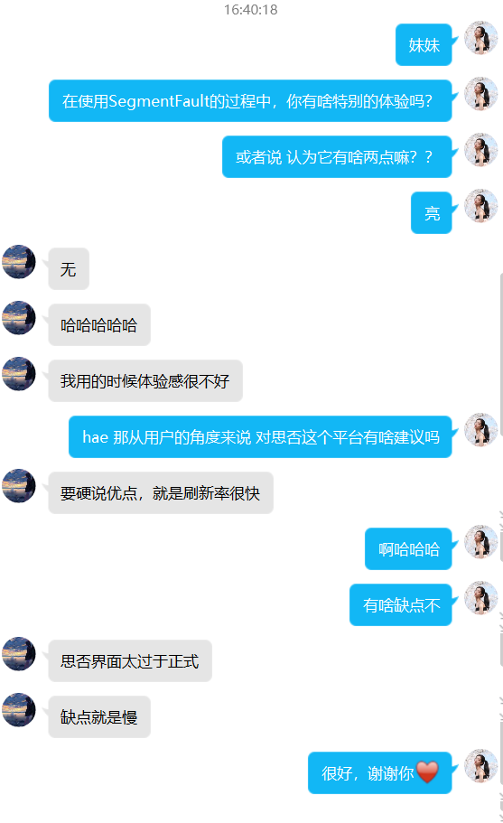 采访对象为软工同学,他和我同样是学生,在编程的学习过程中遇到问题亟待解答时会使用stackoverflow,以下为聊天截图: