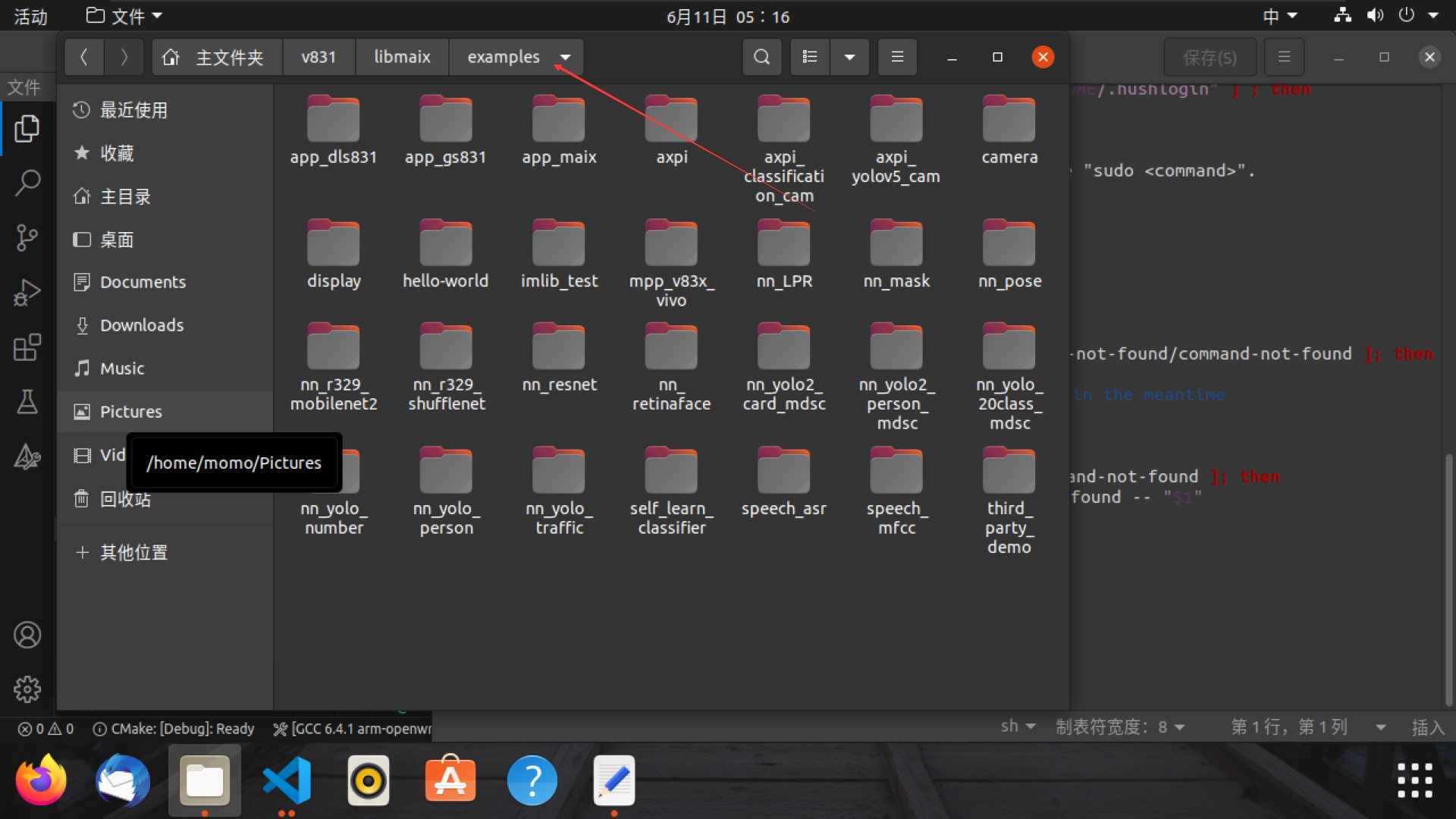 此时,你就可以将例程放到任意一个地方,但是由于cmake的限制,只能复制examples下的例程来开发