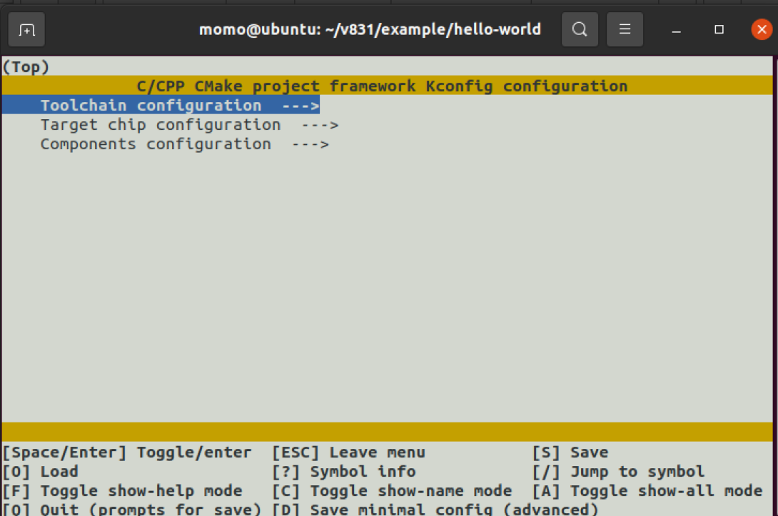 输入pthon3 project.py menuconfig打开设置页面,这个页面是设置你需要什么库以及你的板子类型