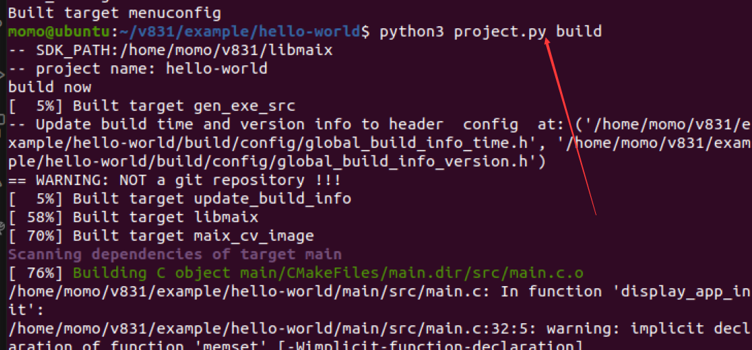 1.如果在example移动之前,已经将example编译过了,那么由于cmake的原因工具的路径仍在,需要输入python3 project.py distclean之后才能正常编译