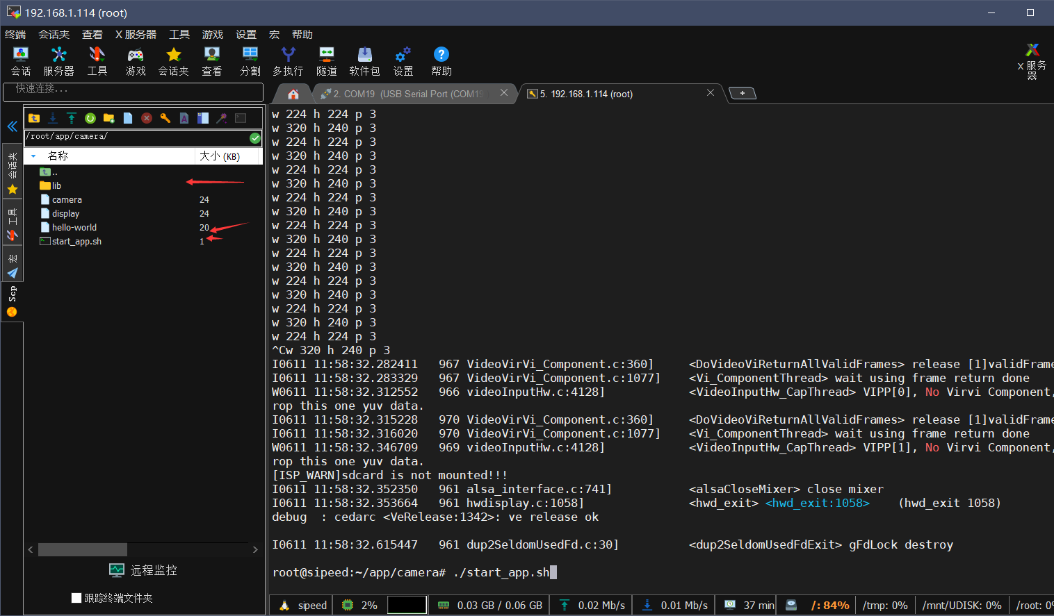 然后将文件夹里面的文件通过ssh或者sd卡放到板子上即可执行,执行指令为cd到可执行文件所在文件夹下./start_app.sh即可。