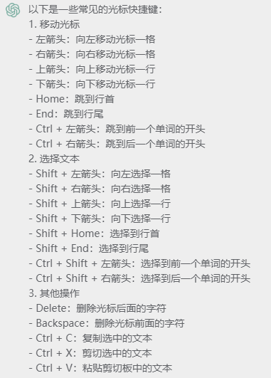 | Ctrl + 右方向键 | 光标跳转到当前单词 / 中文句的右侧开头位置 |