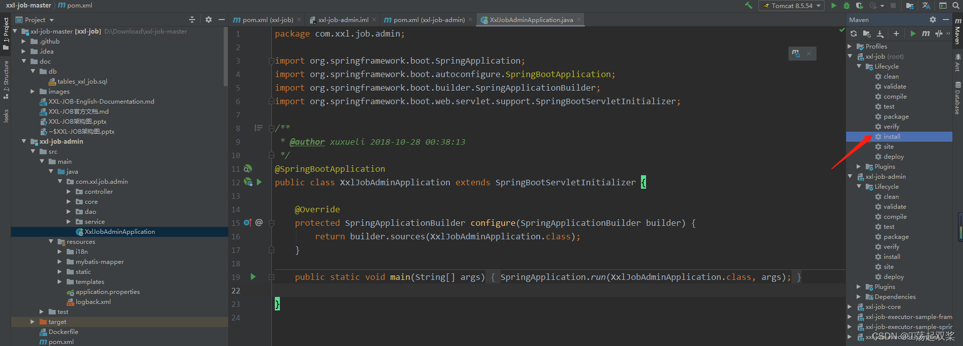 package com.xxl.job.admin; import org.springframework.boot.SpringApplication; import org.springframework.boot.autoconfigure.SpringBootApplication; import org.springframework.boot.builder.SpringApplicationBuilder; import org.springframework.boot.web.servlet.support.SpringBootServletInitializer; @SpringBootApplication public class XxlJobAdminApplication extends SpringBootServletInitializer { @Override protected SpringApplicationBuilder configure(SpringApplicationBuilder builder) { return builder.sources(XxlJobAdminApplication.class); } public static void main(String[] args) { SpringApplication.run(XxlJobAdminApplication.class, args); } }