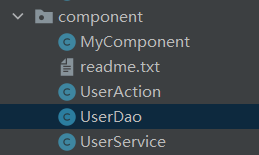 创建 UserAction.java UserService.java, UserDao.java MyComponent.java