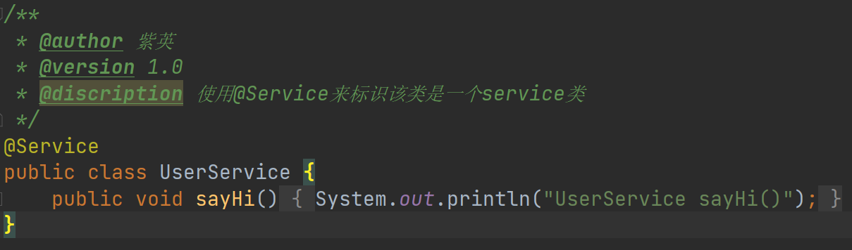 3. @Service 表示当前注解标识的是一个处理业务逻辑的类,通常用于 Service 类