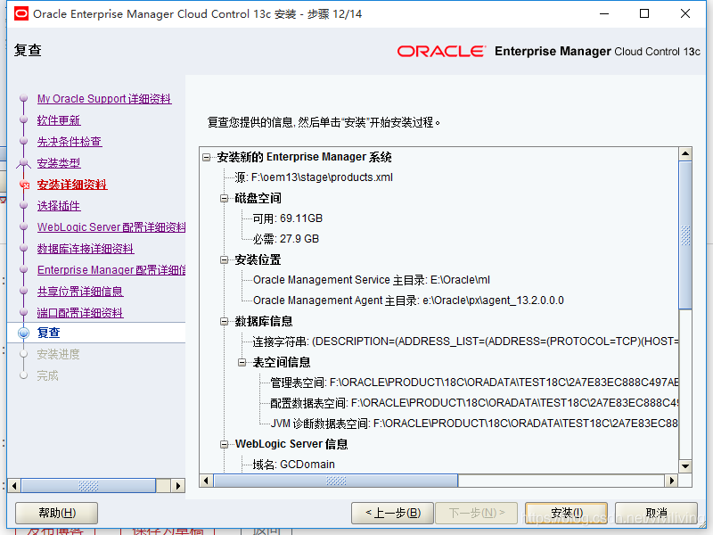 因为我手上资源有限,用的服务器是16g内存,150G硬盘,也装成功了。如果有资源的话,建议参考oracle官方的安装手册(一般完全按照官网来装的出问题概率小)