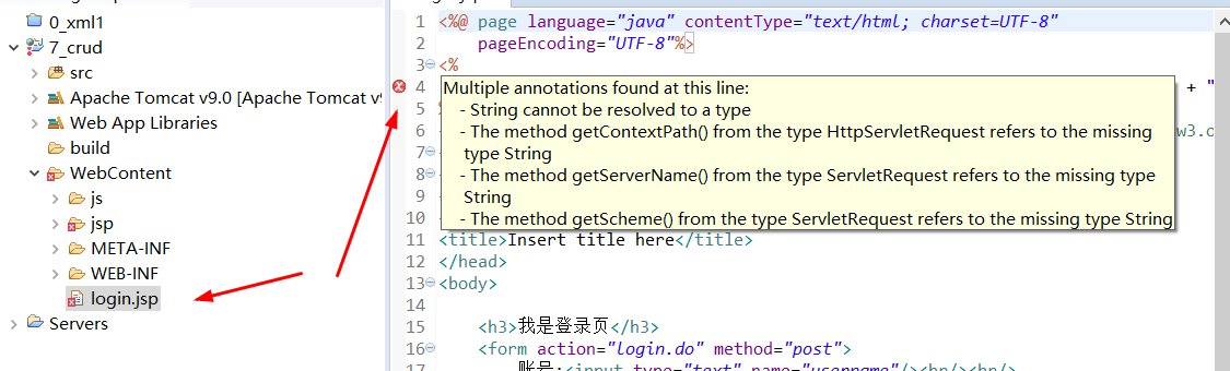 本事件是在新装eclipse8下的jdk1.8.0_101下,导入的web项目,出现jsp文件报错