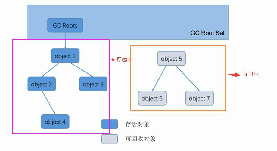 简单来说,就是被根对象集合直接或间接连接的对象才是存活对象,其他都是垃圾。
