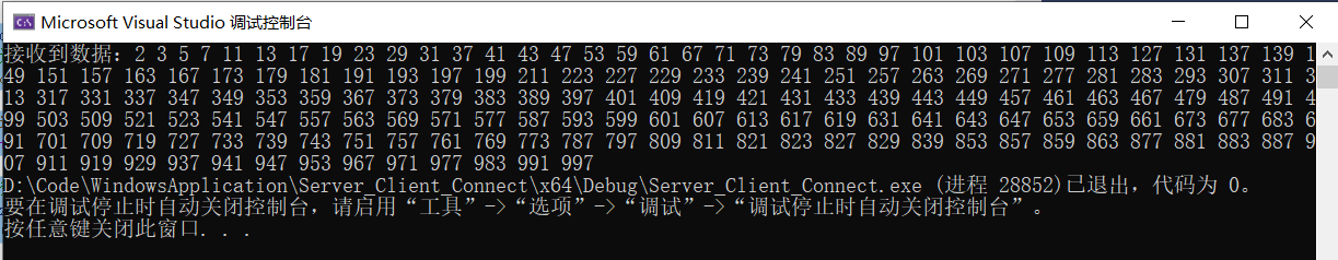 编写Win32程序模拟实现基于WSAAsyncSelect模型的两台计算机之间的通信,要求编程实现服务器端与客户端之间双向数据传递。客户端向服务器端发送“请输出从1到1000内所有的质数”,服务器回应客户端给出结果。