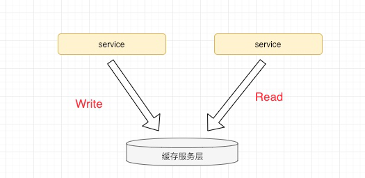 简单来说,将缓存服务层当做MQ(消息队列)使用,通过缓存传递数据,从而实现两个服务通信的目的,如下图。
