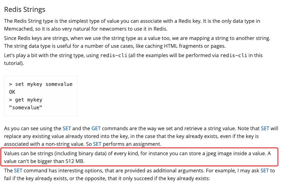 在Redis官网的文档中,我们可以查阅到,Redis支持多种复杂数据结构,也因此,支持Key和Value值大小最大可以到512M。而Memcache的key和Value值大小都被限制在1M以内。