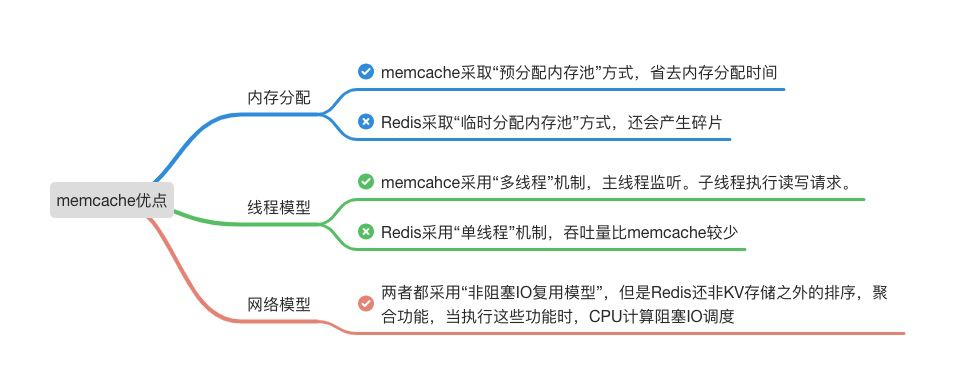 这里的前提是缓存数据类型支持,即纯KV场景。如果业务存在数据量大,并发量大的需求,那么使用memcache或许更适合。 这个也和memcache的底层实现原理有关。