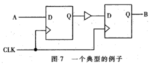例 如,从D触发器的Q输出端直接馈给另一触发器的D输入端时,第一个D触发器能满足建立保持时间,但是到第二个D触发器的延迟就可能不足以满足第二个触发器 对保持时间的要求,此时就会出现逻辑错误,当时钟出现歪斜时错误更加严重。解决办法是在第一个触发器Q端加一缓冲器,如图7所示。这样就能满足第二个触发 器的时序要求。另外还可采用一个低驱动强度的源D型触发器而不加缓冲来解决,高的相对扇出有助于改进保持时间。