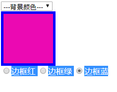 选中下拉菜单中的颜色,改变div中的背景颜色。选中单选框提示的颜色,改变div边框的颜色