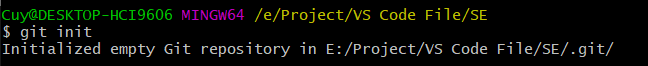 首先,新建文件夹SE作为工作目录,然后在项目根目录下点击Git Bash进入命令行工具,执行git init命令,就可以完成对本地版本库的初始化。