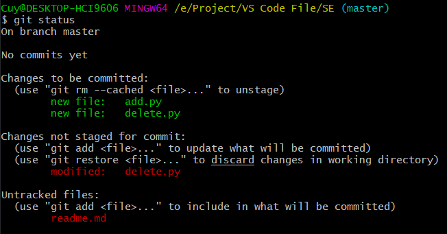 由于用VS Code的图形化界面进行代码管理比较简单明了,因此本文会将以命令行的方式来展示Git在项目中的使用流程,顺便加深对Git命令的了解。