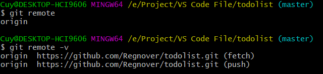 完成初始化后,可以通过git remote命令查看远程版本库的信息: