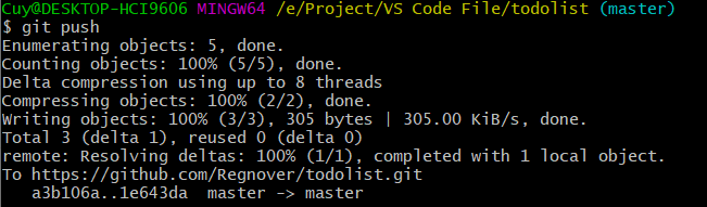 在VS Code修改后,先执行场景一中的git add和git commit命令,然后执行push操作即可将修改后的代码上传到github的远程库中: