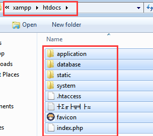 a.把网站文件拷贝到相应的位置xampp下的htdocs,先把原来的清除