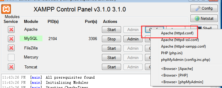 b. 配置httpd.conf,把Listen 80修改为81,因为一般网站是使用80,但是在家用时,国家是不允许使用80,要开通配置去备案