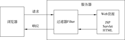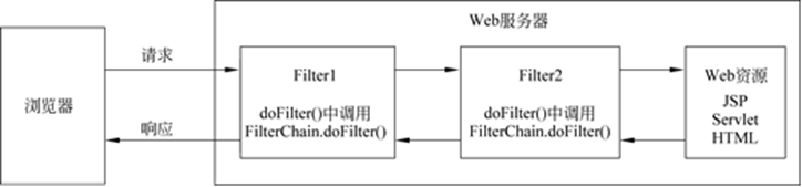 Filter会双向拦截,在chain.doFilter()前拦截浏览器访问目标,在chain.doFilter()后拦截服务器返回响应