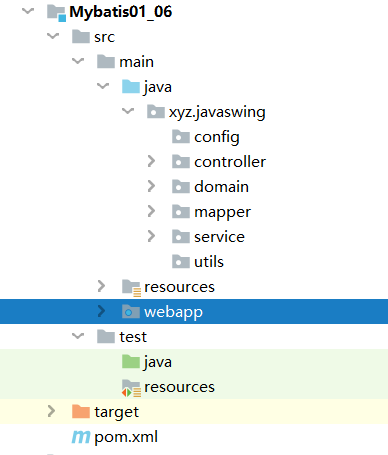 6. 在resource里创建xyz/javaswing/mapper。里面放置xxxMapper.xml映射文件