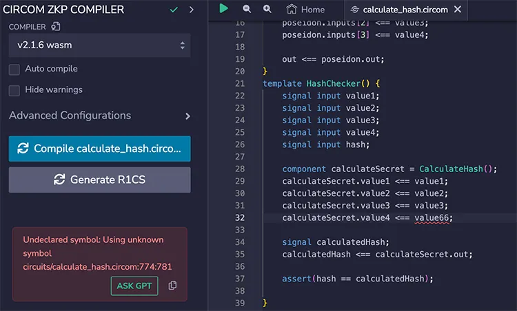 - 向 GPT 提问关于 Circom ZKP 编译器的错误或警告问题