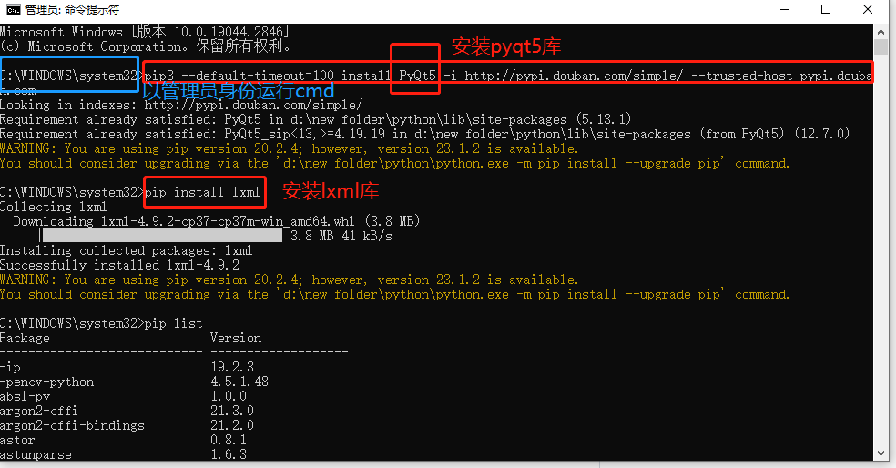 win+r,输入cmd,进入命令行中分别安装python,PyQt5和lxml.