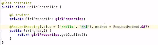 设置RequestMapping,访问hello,或者访问hi,都可以连接到say()方法