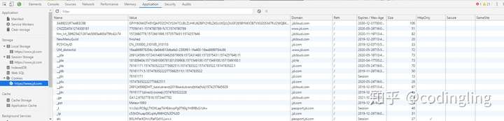 具体操作方式还是在 Chrome 中按 F12 打开开发者工具,选择 Application 标签,点开 Cookies 这一栏。