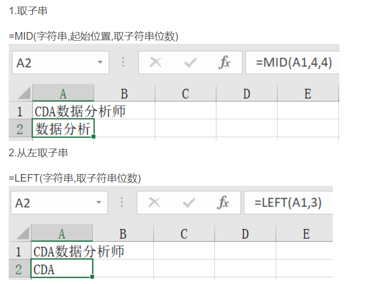 MID语法结构= MID(字符串,开始提取的位置,提取个数)