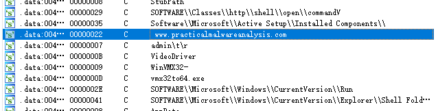字符串有几处可疑的地方:网址、三个注册表值,其中一个注册表值还是自启动的注册表键值。