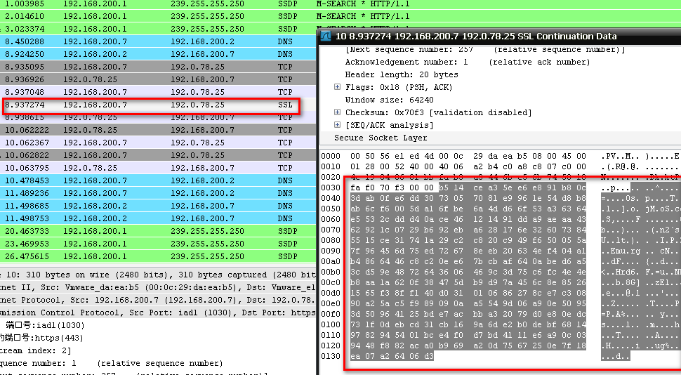 WireShark 后续分析得知,这些信号数据包是固定长度的(256字节),是随机数据。