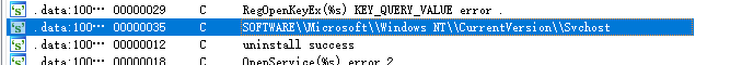 IPA Pro分析字符串发现,有域名、注册表位置、svchost.exe出现。