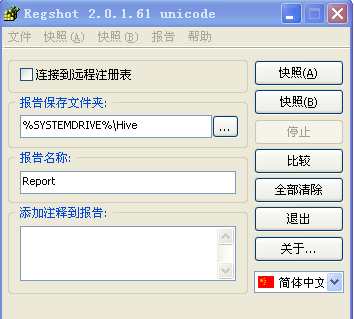 在安装之前,我们使用 Regshot 对注册表进行快照拍摄。安装前拍摄快照A,安装后拍摄快照B。