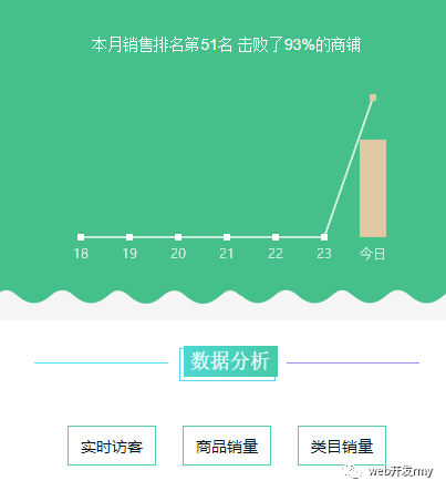 我直接放的项目中代码,前六个为白色,最后一个显示橘色,突出今日交易量,如果项目中需要折线图一并显示,只需要在series中添加一个{},也可以单独将折线图放另外一个容器,